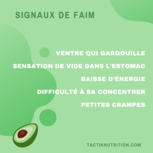 Notre corps envoie des signaux physiologiques qui, dès la naissance, nous permettent de savoir quand nous avons faim et quand nous sommes rassasiés. C’est ce qui nous indique lorsque nous devons commencer (faim) ou arrêter (rassasiement) de manger. Ce sont essentiellement ces signaux qui nous guident pour déterminer la quantité d’énergie nécessaire par jour pour bien fonctionner.